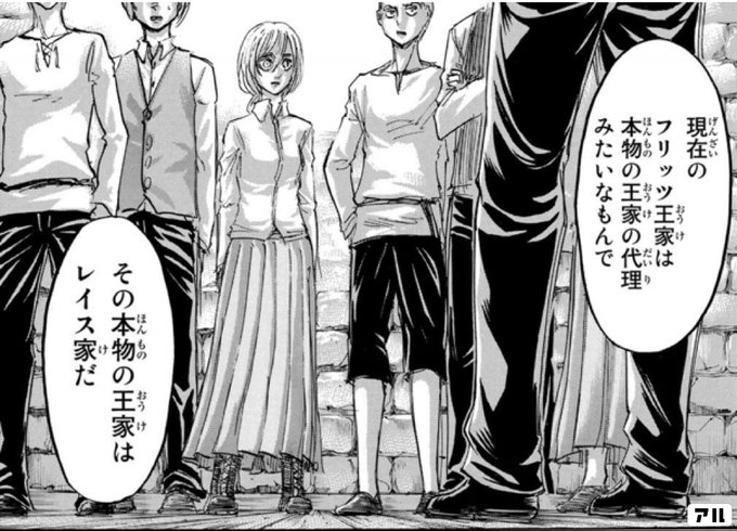 現在のフリッツ王家は 本物の王家の 代理みたいなもんで その本物の王家は レイス家だ 進撃の巨人 アル